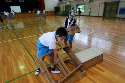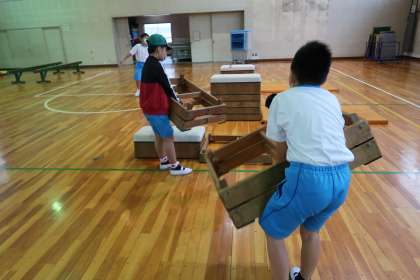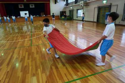 今日も元気な5年生が体育の準備をしていました。