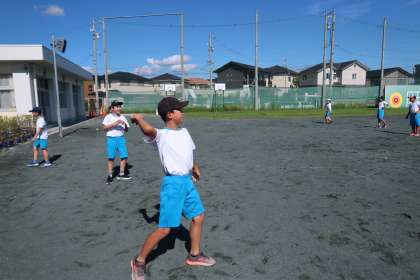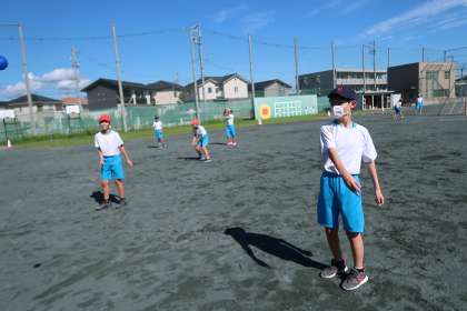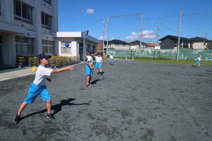 4組の体育の授業です。運動場でティーボールの練習を行いました。