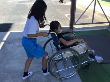 障がいを理解するための実践教室を行いました。車いす講話、車いす体験、手話体験、点字体験、高齢者疑似体験にわかれて学習しました。来週の水曜日も実践教室を行います。