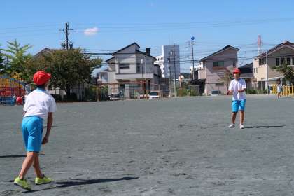 この日も、投げやすい軽いボールでキャッチボールの練習をしました。