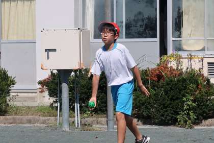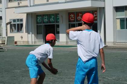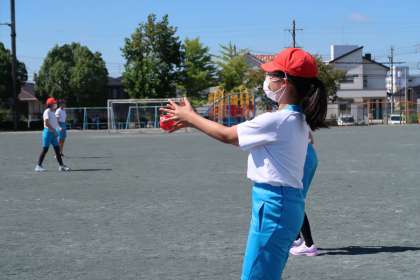 2回目の練習ですが、前回の授業よりも正しいフォームで投げていました。子どもたちの学習能力の高さに驚きました。