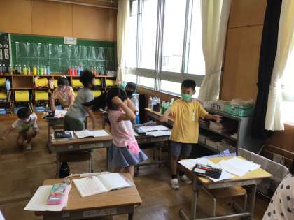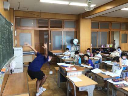 ペアの子と、自分で作った「ことばあそびうた」を伝え合って、発表しました。そして、体でも表現しました。