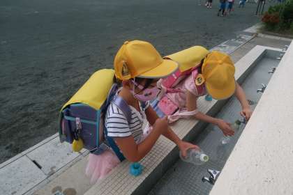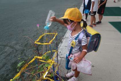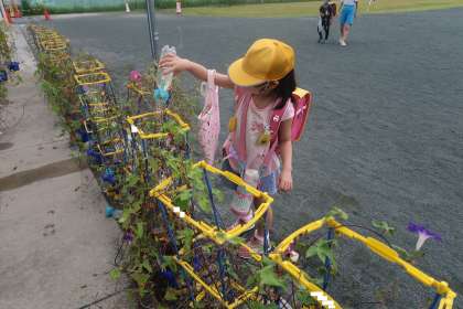 1年生の朝の様子です。今日もアサガオに水やりをしている1年生がいました。