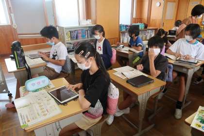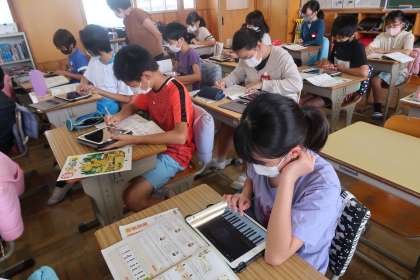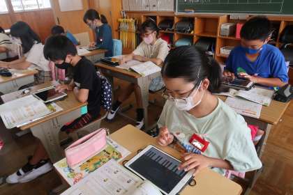 音楽の授業の続きです。学習用タブレットにダウンロードしてあるアプリを使っていました。