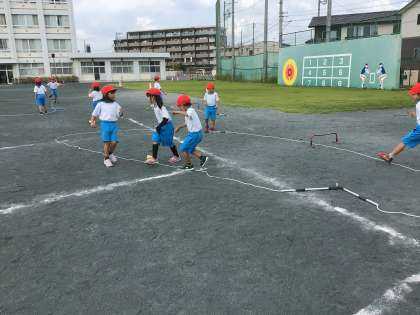 リレーあそびをしました。自分でコースを作り楽しみました。