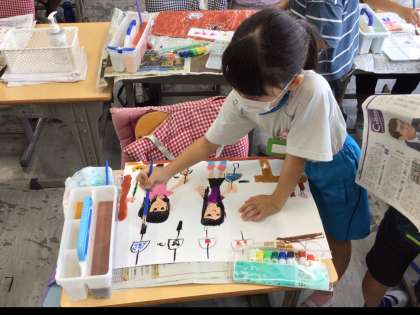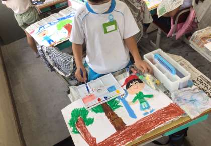 楽しかった思い出やがんばった思い出を、画用紙いっぱいにかきました。
