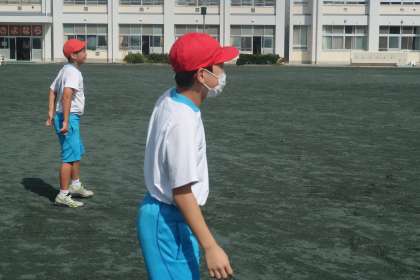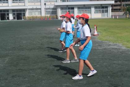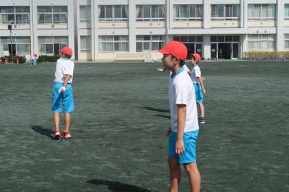 2組の体育の授業です。ティーボールの練習を行いました。