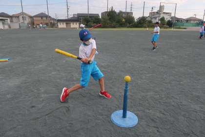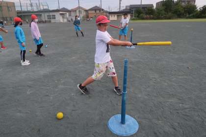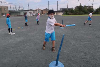 4組の体育の授業です。この日の体育は、ティーボールのバッティング練習を行いました。