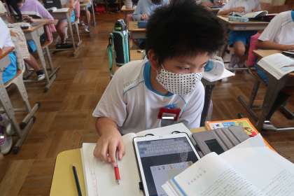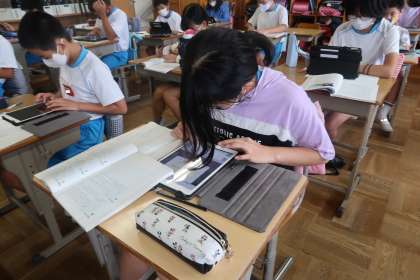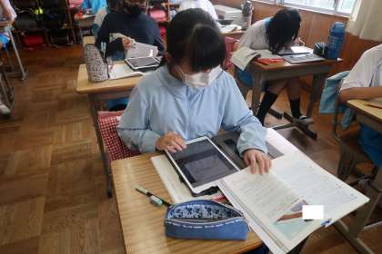 4組の国語の授業です。単元名は、インターネットの投稿を読み比べようです。この単元のまとめの授業です。