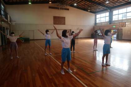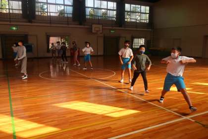 朝のダンスリーダーの様子です。全員のダンスがそろってきました。元気よくダンスしていました。