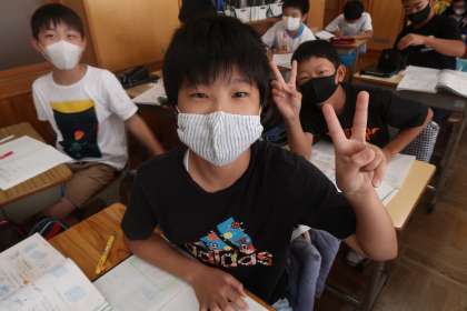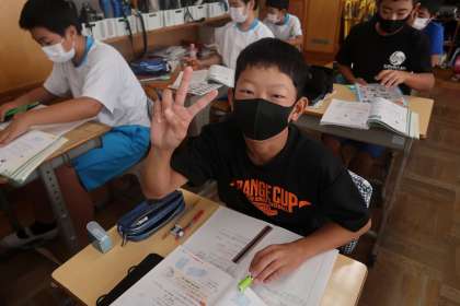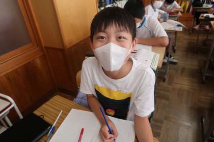 算数の授業です。授業の振り返りを書き終わった子どもたちです。