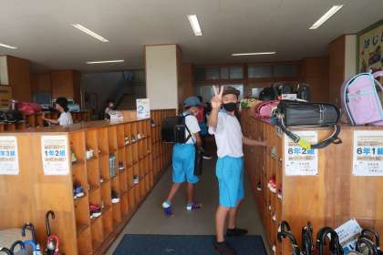 挨拶ボランティア後の様子です。今日も元気よくボランティアを終え、気持ちよく教室へ向かって行きました。