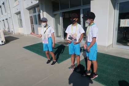 暑い中、元気よく挨拶をしていました。手話での挨拶は、元気さはありませんが、無言でできるところがよかったです。