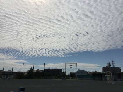 空の青色がきれいです。雲の形も面白い!!すっかり秋空ですね。