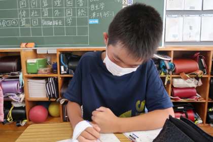 2組の算数の授業です。立体の体積の練習問題を行っていました。