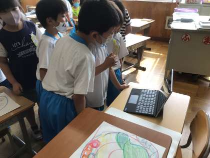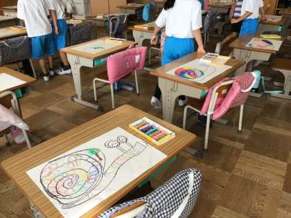 「おはなしからうまれたよ」の学習で、読書感想画の練習を始めました。自分のイメージした世界を、のびのびと描きました。