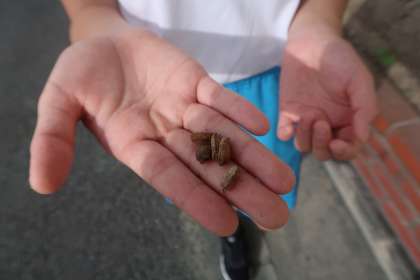 ずっと毎朝ツルレイシに水やりをしてくれていた4年生の子が、ツルレイシの種子を見せてくれました。ありがとうございました。
