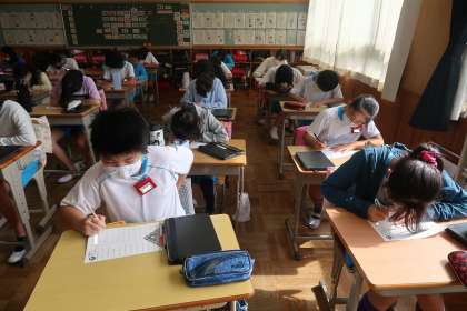 昨日の新出漢字の様子です。学級の3分の2以上の子は100点でした。