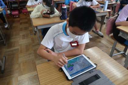保健委員が考えたジェスチャーゲームの後に、聞き取りお絵かきを行いました。絵を見ずに、保健委員の絵の説明だけを聞いて絵をかいていました。