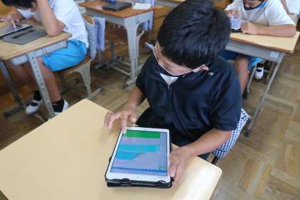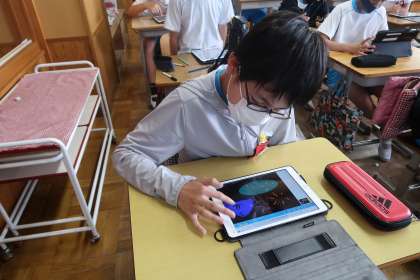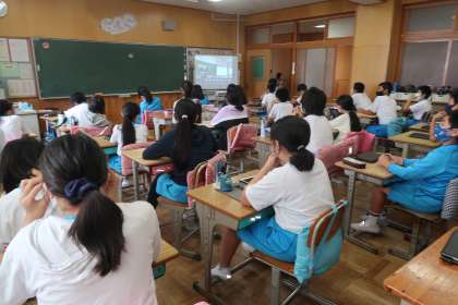 絵をかいた後は、スクールカウンセラーの話を聞きました。多義図形を見て、何に見えるかを発表しました。また、文字や写真だけのスマートフォンのラインでは伝えたいことが伝わりにくいということを実感しました。