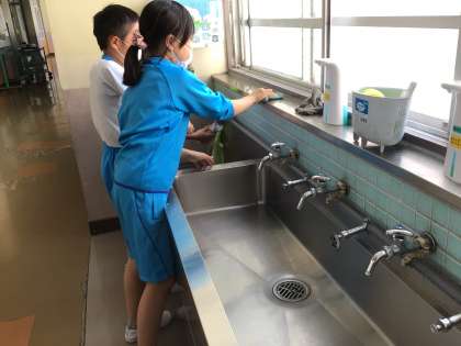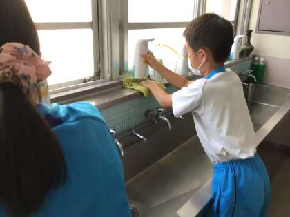 物をどかしながら丁寧に水気をとってくれています。ステンレスの銀色が輝きました。