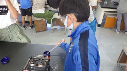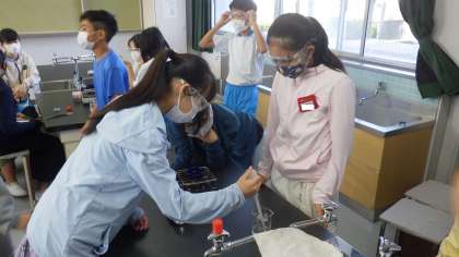 保護メガネを着用し、安全に気をつけ、協力して行うことができました。