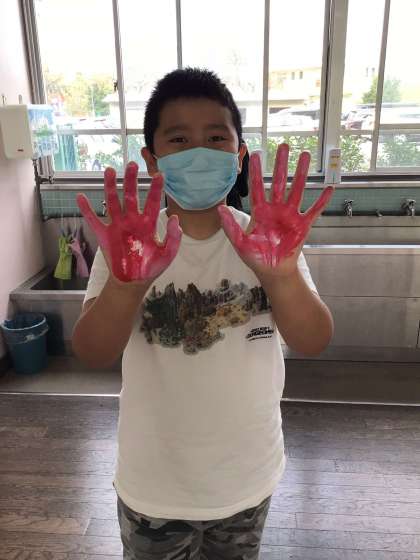 絵の具を使って「ハロウィンのおばけ」を作りました。手に直接絵の具を塗って手形を活かしたり、筆で模様を描いたりして思い思いの作品を仕上げました。
