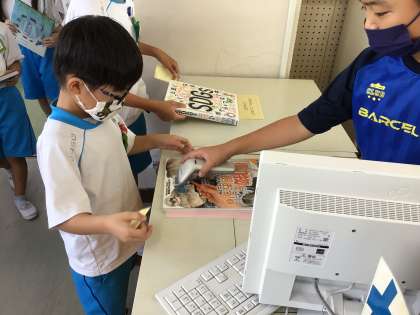 今月から、決められた休み時間に自分で本を借りに行っています。