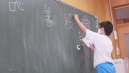 新出漢字の学習を行いました。子どもが前に立ち、先生となってみんなに説明をしています。説明をすることは、記憶の定着にもつながるため、漢字の学習に限らず取り組んでいきたいですね。