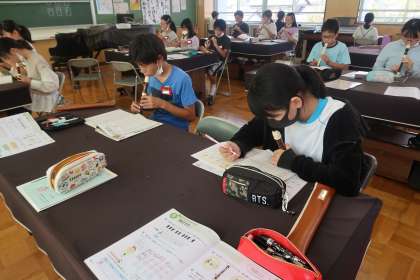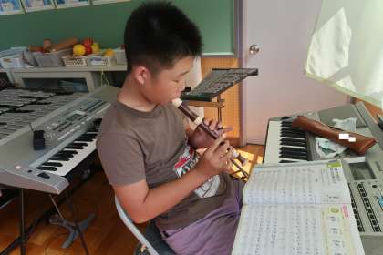 友達との距離を広く取り、一定方向を向き、互いに向かい合わないようにして、リコーダーを吹いていました。