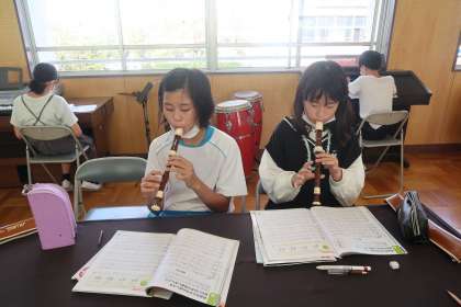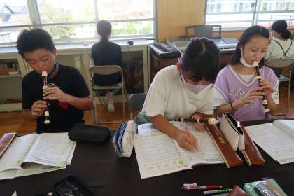 最初に、楽譜の音符の上にドレミを書いてから練習していました。練習中に気づいたことを教科書に書き込んでいました。