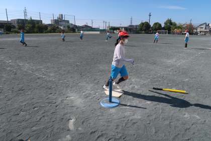 ボールをより遠くに飛ばすためにバットをしっかりと振り抜いていました。ボールを捕球することにも慣れ、フライを捕球してアウトカウントを取ることができる子が増えてきました。