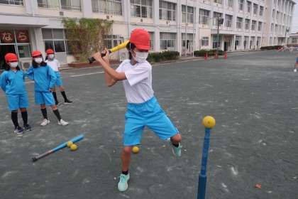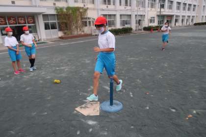 ランナーが、ホームインするとチームの点数に1点が加算されます。いつもよりもベース間の距離を長くして、走力の必要性を高めたゲームを行っていました。