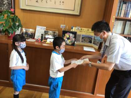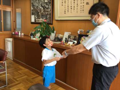 校長先生から一人ずつかがやき賞をいただきました。