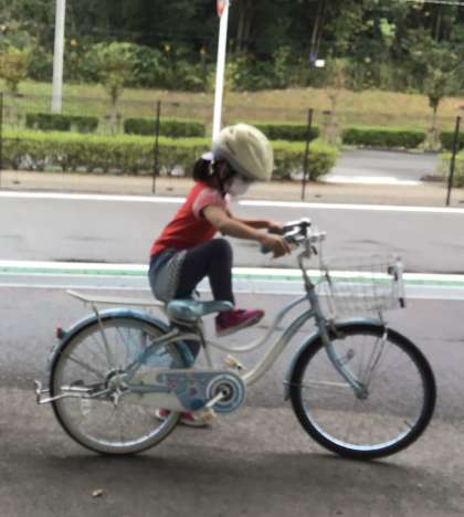 自転車は道路の左側を通行します。右側に倒れると危ないので、左側からまたいで乗ります。