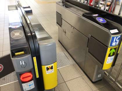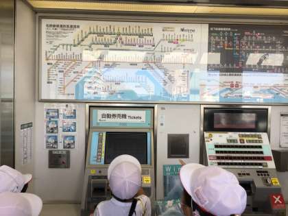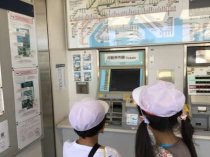 券売機や改札口を興味を持ちながら