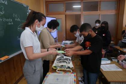授業の最後には、振り返りを記入していました。挨拶の時には、前期の授業のお礼の手紙を渡していました。素敵ですね。