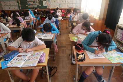 最後に、税金についてわからないことや疑問に思ったことを質問していました。ここでもたくさんの子が手を挙げて質問していました。税金に興味をもつことができていました。とても有意義な租税教室でした。