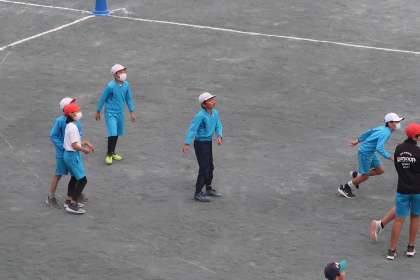 スポーツクラブの様子です。柔らかいフリスビーを使ってゲームを行っていました。とても盛り上がっていました。