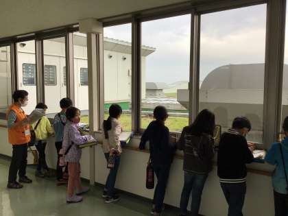 エレベーターで7階まで上がりました。高速道路や屋上緑化の様子も見ました。