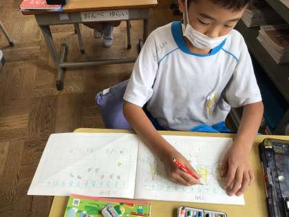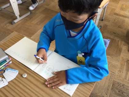 お話づくりの続きです。とても、熱心に取り組んでいます。
