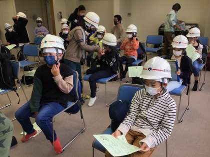 ヘルメットをかぶり、今から見学に行きます。
