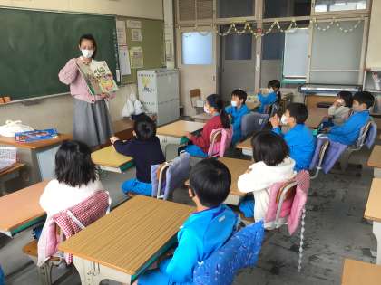 3組はマライヤ先生が英語の本を読み聞かせしてくれました。
