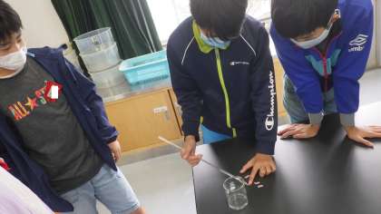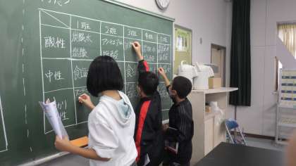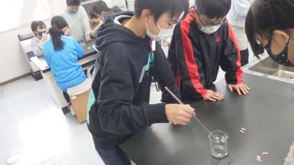 リトマス紙を用いて、液性を判別する実験を行いました。リトマス紙の色が変わるかどうか注視し、その結果から液性を考える姿が印象的でした。安全に気を付け、集中して取り組むことができました。