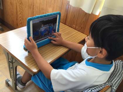 「EXダンス体操」を踊る様子を撮影して、見本と比べて見てみました。自分の動きと見本の動きを比べながら見ることで、課題が見つかったようです。