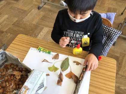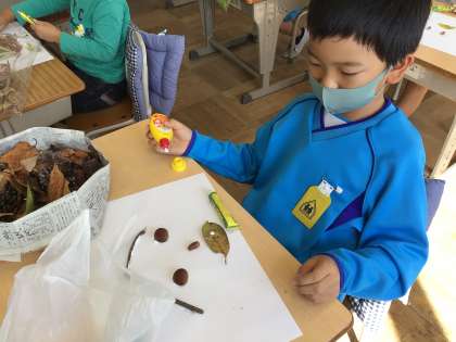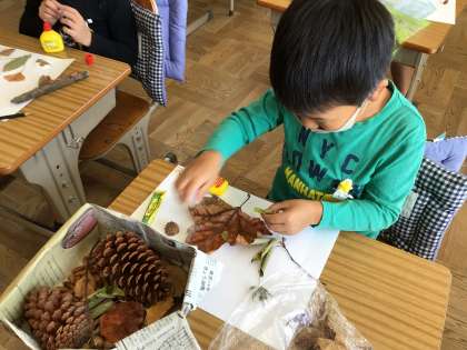 大きな葉や、枝を組み合わせたり、実と実をくっつけたりしている子もいましたよ。