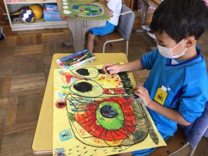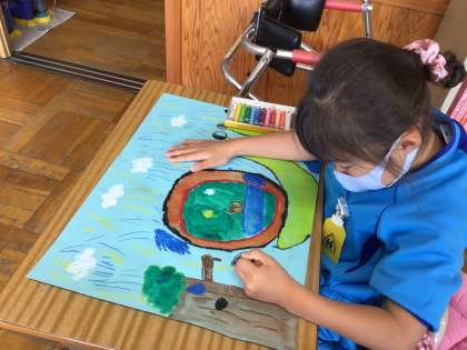 最後まで、丁寧に色をぬっています。どこに、どんな色を入れたらいいのか考えながら進めました。