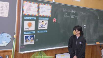 外国語では、係の子が前に立ち、みんなに英語で疑問を投げかけ、みんなが答えるという活動を毎時間行っています。毎時間楽しそうに取り組めており、とてもいいなと感じます。