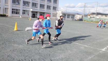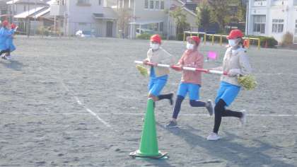 マスクをし、感染対策をしながらスポーツフェスタの練習を行いました。台風の目では、初めて他のクラスと競い、クラス練習とは違う真剣さが伺えました。競技の勝ち負けだけではなく、移動の仕方、並び方など、6年生としての見せ方にもこだわってほしいなと思います。