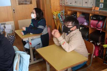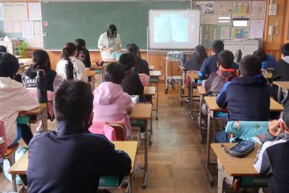今週、読み聞かせがありました。絵本の絵がよく見えるように、プロジェクターを使いました。